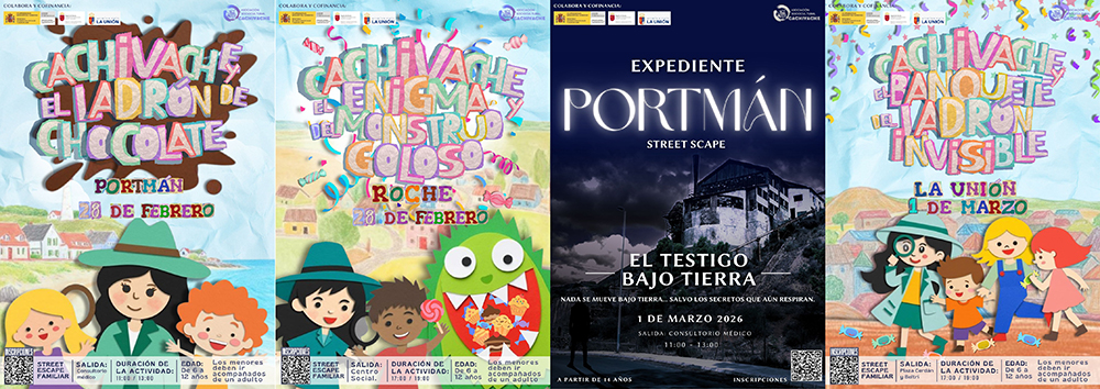 Cuatro juegos de calle se celebrarán este próximo fin de semana en Roche, Portmán y en la ciudad de La Unión, donde estará 'la detective Cachivache' para resolver tres misteriosos casos, a los que se sumarán el domingo en el pueblo costero los expedientes paranormales que fueron aplazados por el mal tiempo en febrero.