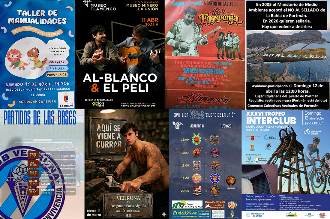 Regresan buena parte de las competiciones deportivas, incluida la liga local de baloncesto con su sexta jornada. El invicto CD Vedruna de fútbol sala recibe el sábado a un equipo que lleva 7 victorias y un empate en las últimas semanas. Por su parte, el Ciudad de fútbol viaja al campo del Dolorense y hay 7 equipos del CB Sierramar en liza. Llega el final de la vuelta ciclista amateur regional con final de etapa en la mina Agrupa Vicenta. Al margen del deporte, nuevo capítulo del ciclo flamenco en el museo, presentación del nuevo disco del unionense Bob Eggsponja, taller de manualidades en la biblioteca y convocatoria para repetir al Estado el ‘No al sellado de la bahía’.