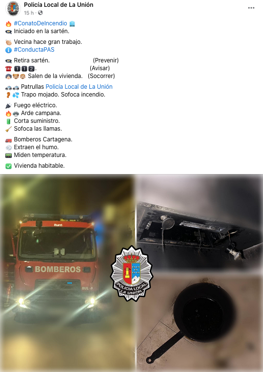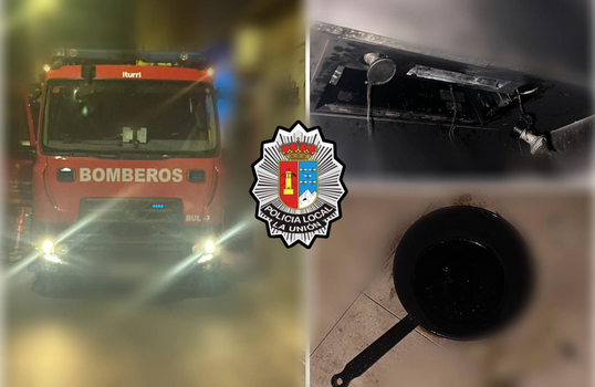 Tuvo lugar en la Unión, indicando la Policía Local que tuvo su origen en una sartén en la cocina. Los agentes sofocaron las llamas colocando encima del recipiente un trapo mojado, además de cortar el suministro eléctrico, pues hizo arder a la campana. Los bomberos, después, extranjero el humor de la vivienda.