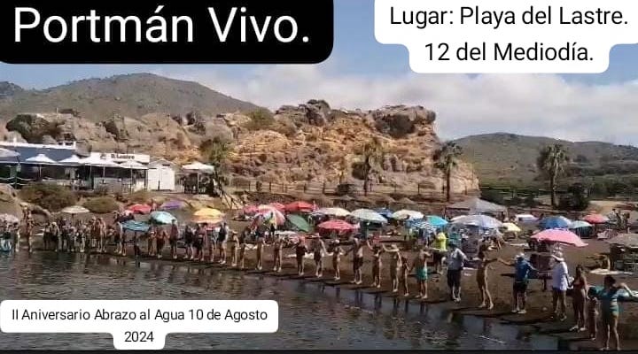 Hoy, a las doce horas, se celebra el 'Abrazo al agua' en nuestro país, que será la cuarta edición en el caso de las poblaciones que rodean el Mar Menor para conmemorar la Iniciativa Legislativa Popular conseguida por el empuje ciudadano. Por su parte, la plataforma 'Portmán vivo', coincidiendo con esta jornada, convoca a formar una cadena humana en la playa de El Lastre a la misma hora, como ya tuvo lugar el pasado año.