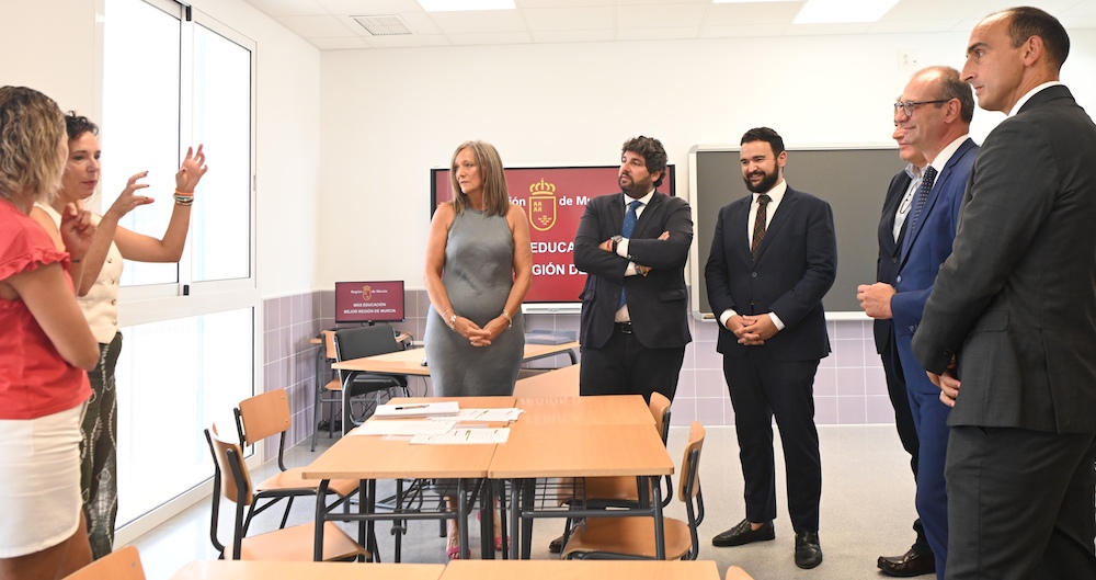 Sobre las instalaciones, el máximo responsable autonómico explicó que “traen más comodidades y los recursos necesarios para alumnos y docentes, con más aulas, un nuevo sistema de climatización, zonas de sombra o un nuevo comedor. Más que un nuevo pabellón, se trata prácticamente de un nuevo centro que cumple con las expectativas de La Unión y de la comunidad docente”.