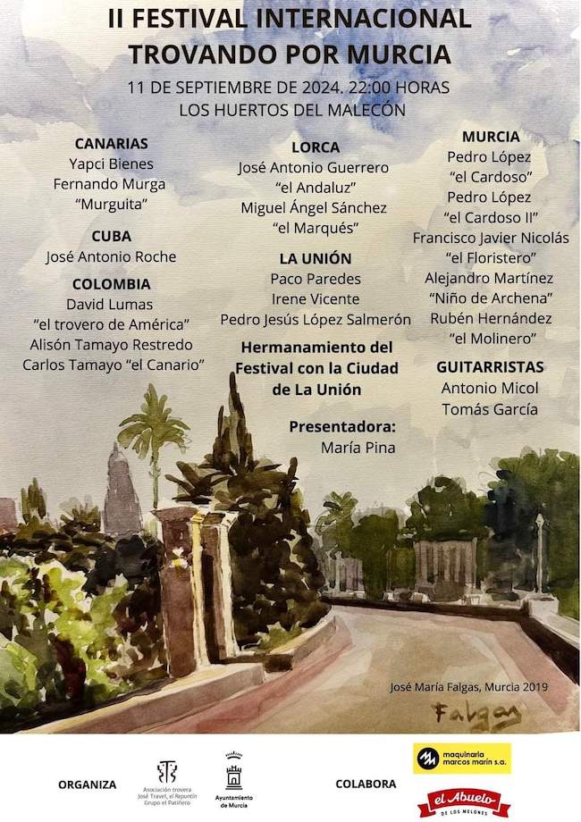 El festival internacional 'Trovando por Murcia', que celebrará su segunda edición el 11 de septiembre en Los Huertos del Malecón de la capital regional con participantes de diversas localidades de nuestro territorio autonómico, de Canarias y de Hispanoamérica, llevará a cabo esa jornada un hermanamiento con la ciudad de La Unión. En la foto, Pedro Salmerón, Paco Paredes e Irene Vicente, quienes representarán en la velada al trovo unionense.