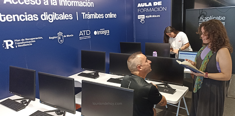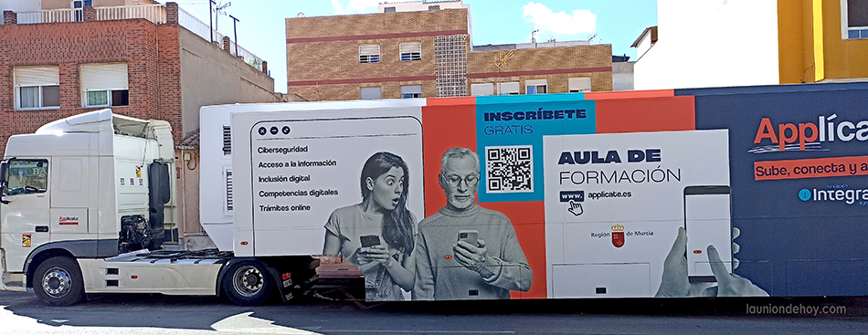El aula móvil de la campaña de formación itinerante en competencias digitales está del 9 al 13 de septiembre en la calle Real de la ciudad de La Unión. Su objetivo es promover el acceso generalizado a las oportunidades y ventajas de la sociedad de la información bajo el lema 'Applícate. Sube, conecta y aprende'. Para ello, los formadores se valdrán recursos y materiales formativos, dispositivos electrónicos y tecnología innovadora como gafas 3D, realidad virtual o pantallas táctiles para realizar las dinámicas de formación.  Los participantes que superen la semana de formación participarán en el sorteo de un viaje a la Ciudad de las Artes y las Ciencias de Valencia.