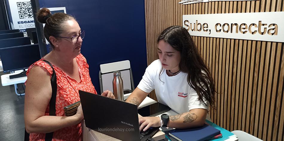El aula móvil de la Fundación Integra Digital se ha instalado en la calle Real, donde estará hasta este viernes para facilitar a los vecinos, de forma gratuita, formación en habilidades básicas para moverse por internet, para hacerlo de forma segura y para aprender a llevar a cabo gestiones útiles. El lema del proyecto 'Applícate' es 'Sube, conecta y aprende'.