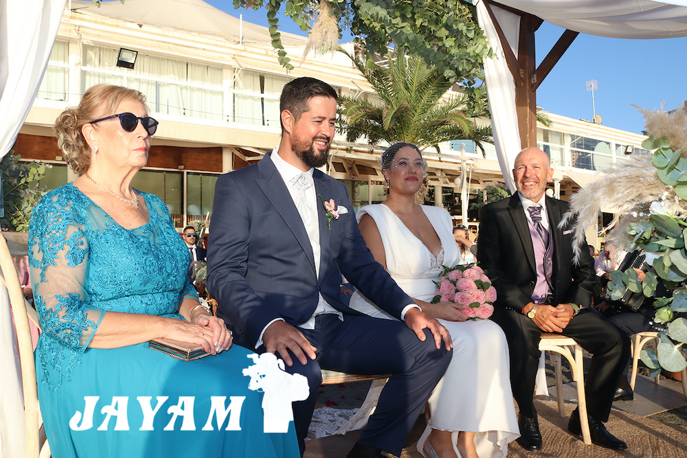 Las cristalinas y serenas aguas del Mar Menor han sido testigo del enlace entre Hugo y Rocío, en una emotiva ceremonia oficiada por el comandante Jorge Reguera.