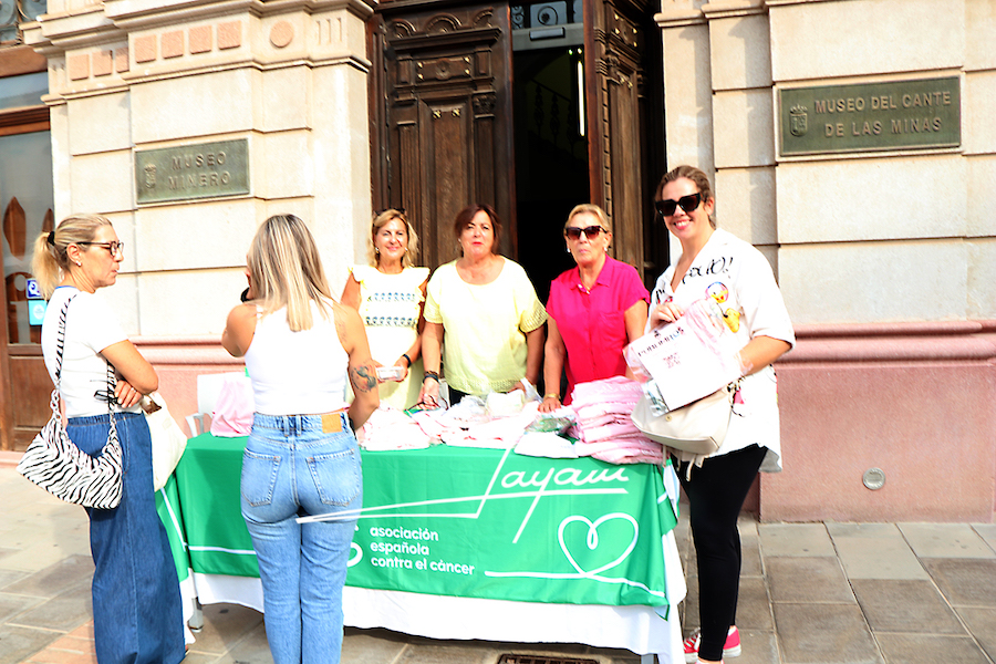 Este próximo domingo, a las doce horas de la mañana, la plaza de Joaquín Costa se verá invadida por una 'marea rosada' por una buena causa. La presidenta de la Asociación local de La Unión, Maria Hermógenes, y su equipo, llevan vendiendo camisetas y complementos más de dos semanas para recaudar fondos para la investigación en pos de erradicar el cáncer.