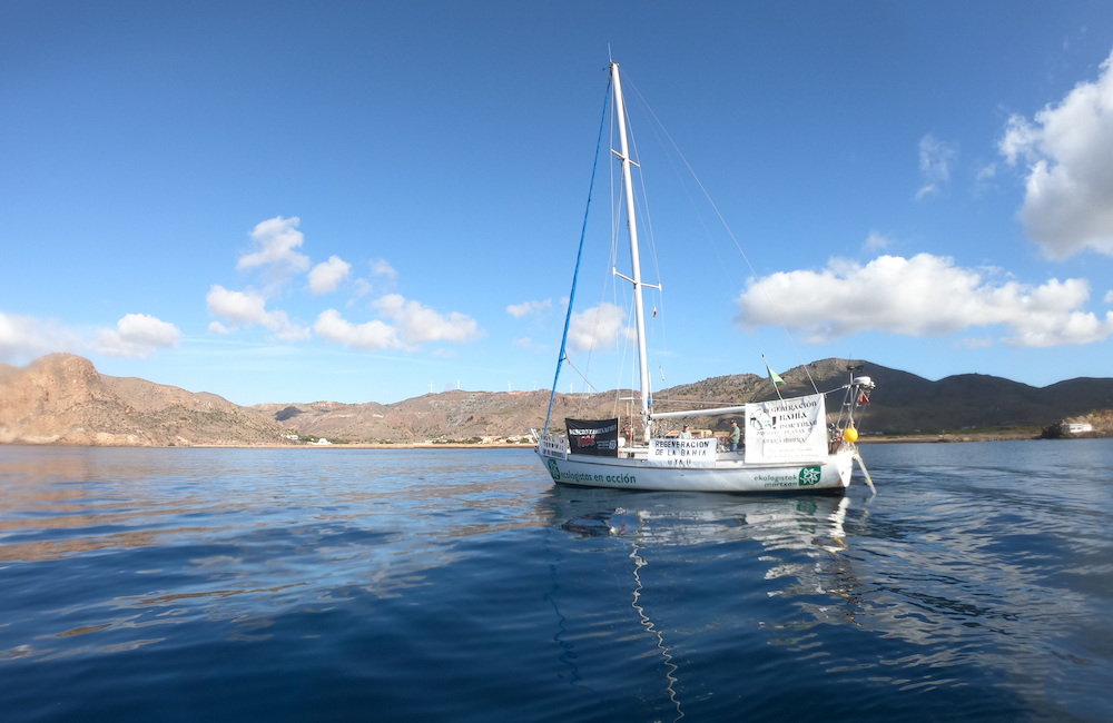 Pero esta acción reivindicativa, que consistió en el despliegue de pancartas en el velero Diosa Maat frente a la costa de la bahía de Portmán, no se centró solo en la regeneración de la misma, sino que con ella las organizaciones quisieron reivindicar otras dos cuestiones importantes: