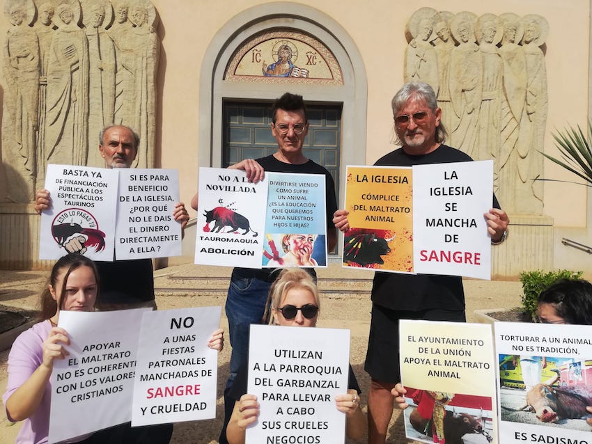 Representantes de la Coordinadora por los Derechos de los Animales de la Región de Murcia junto con representantes de la plataforma ciudadana que ha surgido de forma espontánea entre ciudadanos y ciudadanas y entidades protectoras de animales, han mostrado su rechazo a la novillada que se pretende celebrar el día 12 de octubre de 2024 en el municipio de La Unión, donde también está involucrada la Parroquia Nuestra Señora de los Dolores ubicada en El Garbanzal.