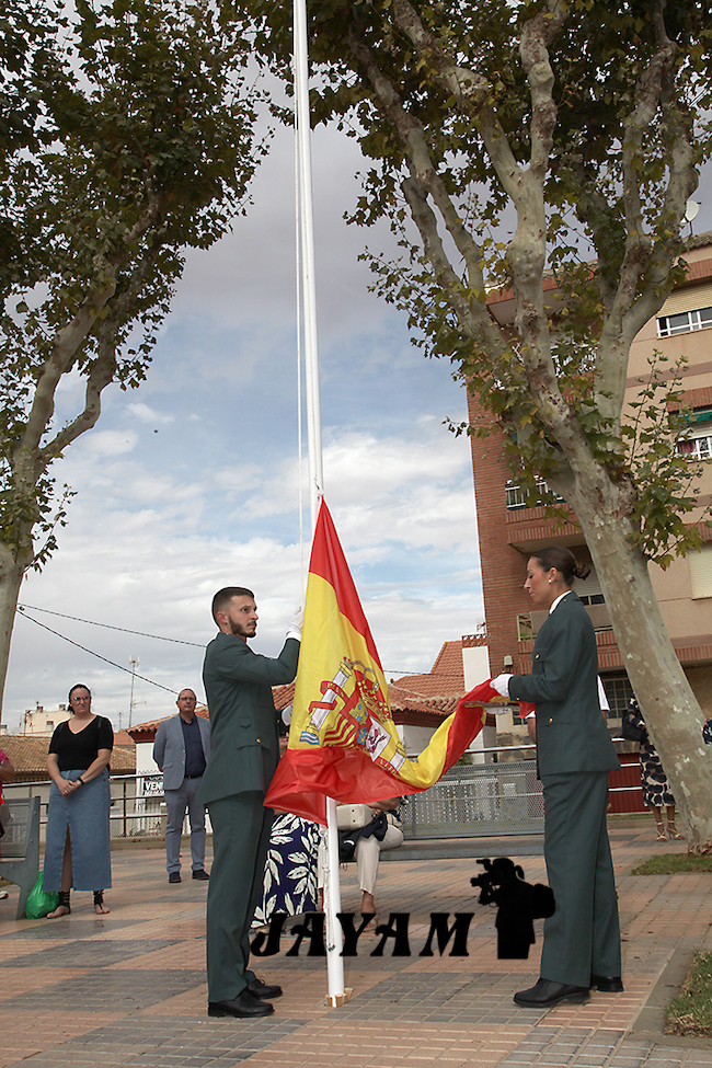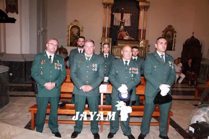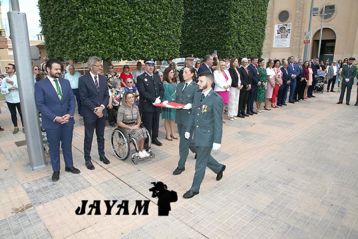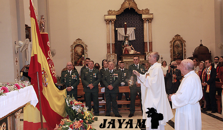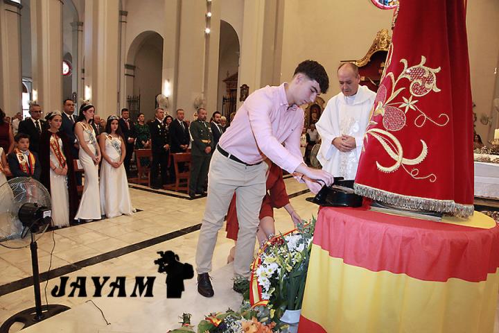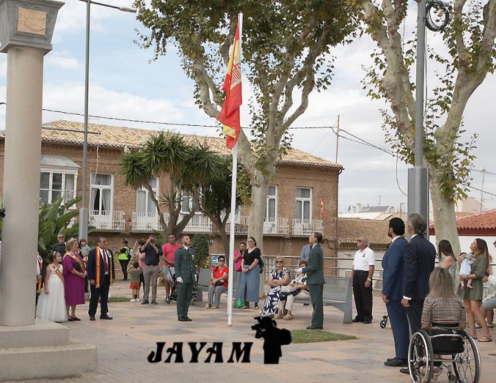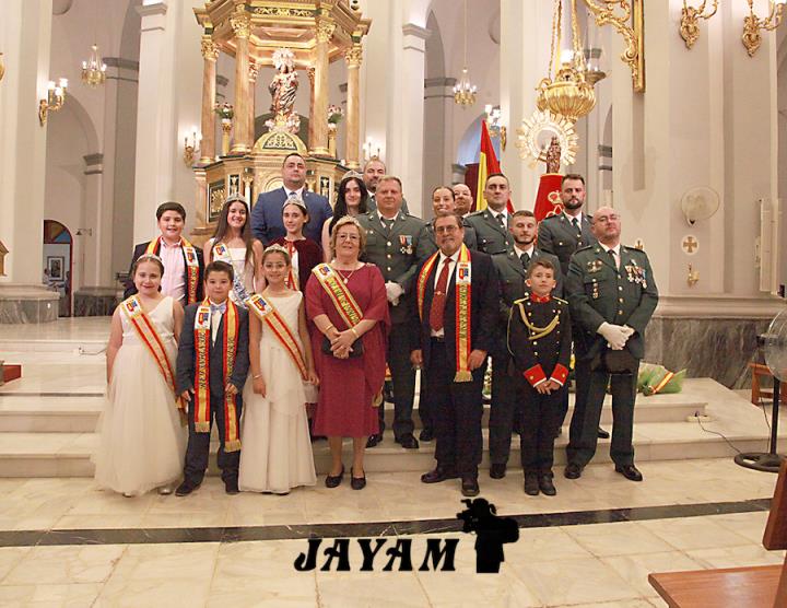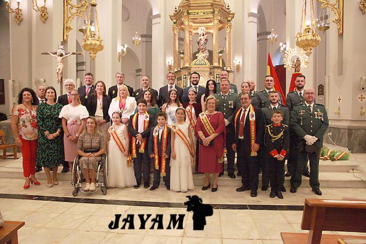 La misa, que ha incluido las ofrendas, ha sido oficiada por el párroco, Ginés Luis Vicente. A su conclusión, a la salida de la iglesia, se ha llevado a cabo el tributo a la bandera de España, siendo izada mientras sonaba el himno nacional.