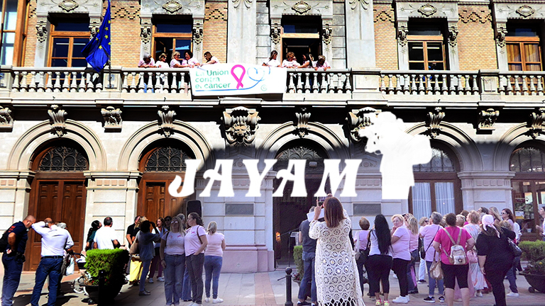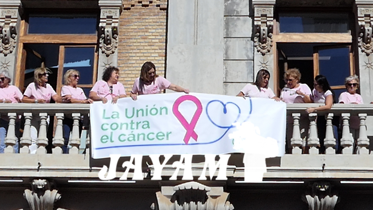 Es la leyenda que luce en la pancarta de tres metros de longitud que se ha desplegado en el balcón del ayuntamiento con motivo del 'Día mundial del cáncer de mama' y después de la lectura de un manifiesto.