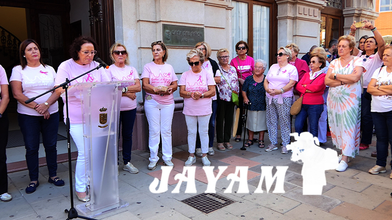 La delegación local de la 'Asociacion española contra el cáncer', que dirige María Hermógenes, acompañada de la primera teniente de alcalde, Isabel Egea Navarro; la concejala de la Mujer, Damiana García; la concejal de Festejos, Loli Mendoza; y el concejal Damian García, entre otros, han llevado a cabo esta mañana la lectura de un manifiesto ante la fachada de la Casa del Piñón en el que se reseñaban los avances que se están llevando a cabo contra esta maldita enfermedad y la cantidad de afectados que son atendidos cada día, destacando también que aumentan los enfermos que sanan en este terreno.