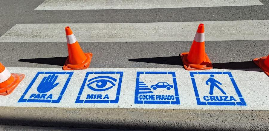 El primero se ha instalado frente al colegio de Alfonso X El Sabio, con muy visibles indicaciones en el inicio de ambos sentidos pidiendo a los peatones (en este caso, la mayoría chavales) que, por su seguridad, se paren, miren y cuando vena que los vehículos están parados, crucen.