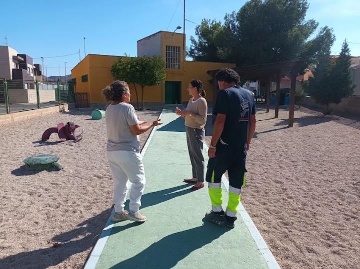 La concejal de Educación y Empleo, Aurora Ródenas, acompañada de la concejal de Festejos y Asociaciones, Loly Mendoza, han visitado los trabajos realizados en el CEIP El Garbanzal, por los alumnos-trabajadores del Programa Mixto de Empleo y Formación “Construcción sostenible-La Unión”.