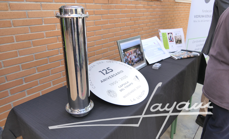 Carmelitas es una de las instituciones más longevas de La Unión, como atestiguan sus 125 años de historia que se celebran este curso con un programa de actividades que ha arrancado dando contenido a una cápsula del tiempo, que ha sido enterrada en el patio del centro unionense, y que incluye el tríptico de actos de la celebración de este cumpleaños, foto del personal del centro, un periódico de hoy de 'La Verdad', un manifiesto, frases de los alumnos de cómo imaginan que será Vedruna en el futuro y dos 'pendrives' ('pinchos' electrónicos de memoria) con imágenes de las diversas épocas del centro. "Todo guardado en una caja robusta para que dure y perdure, permitiendo que en el futuro vean nuestra forma de trabajar", ha expuesto José Casildo Alcaraz Mateo, director general de Fundación Vedruna, sobre este acto de "sembrar una huella para el futuro, dejando testimonio de la historia del centro".