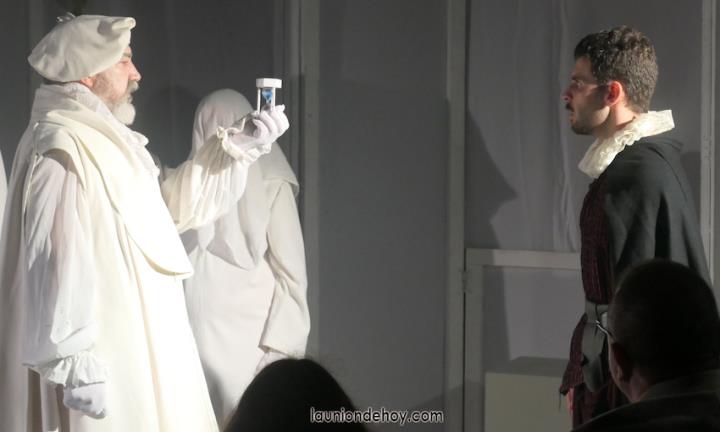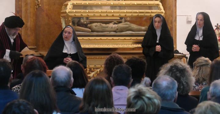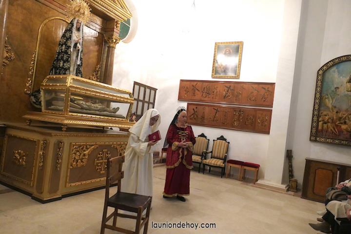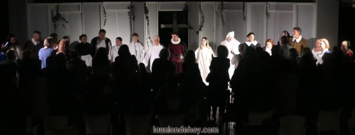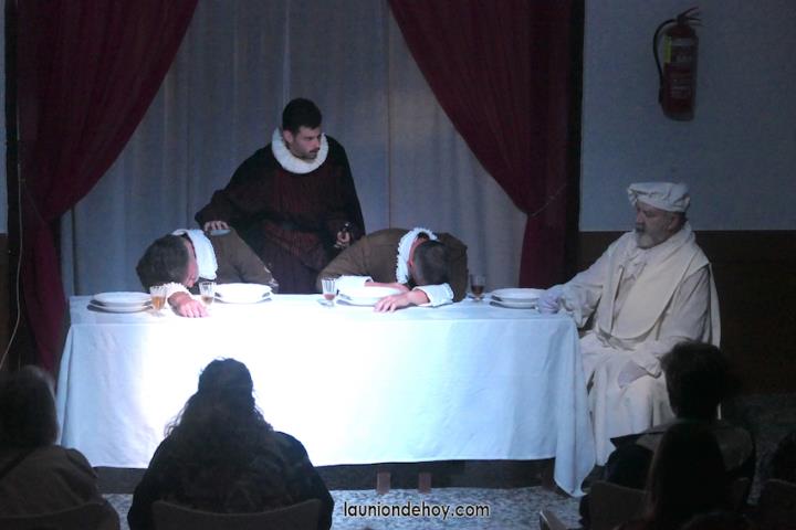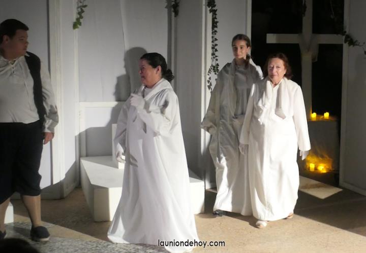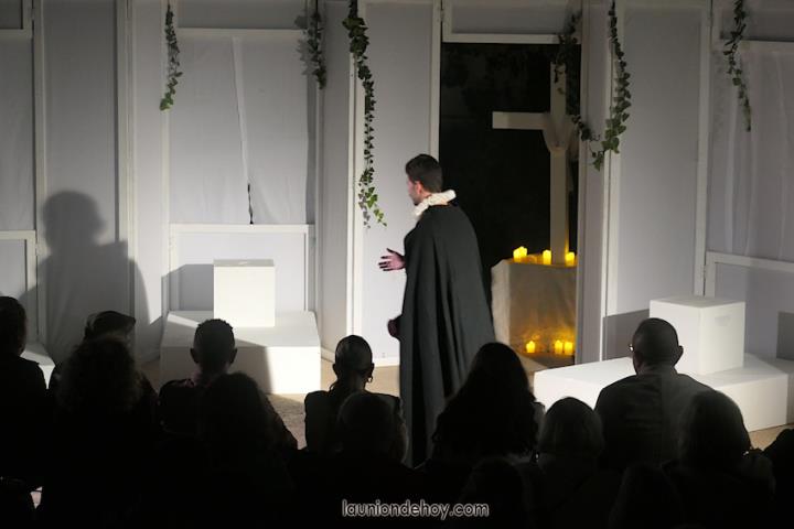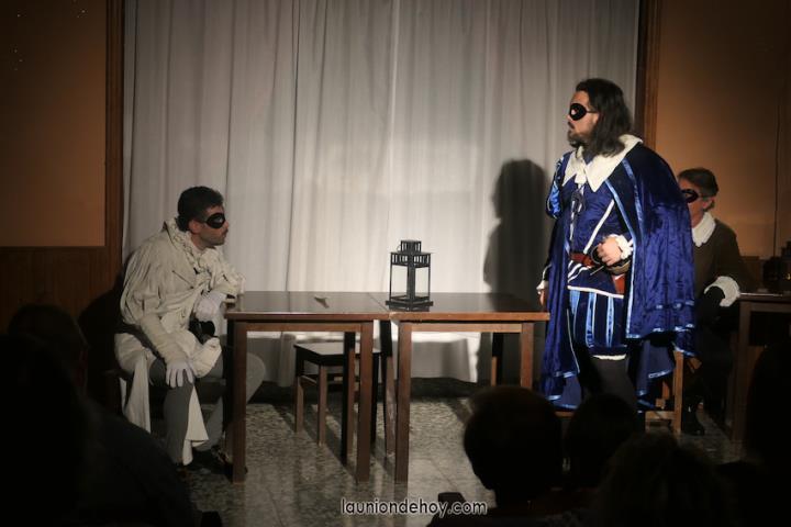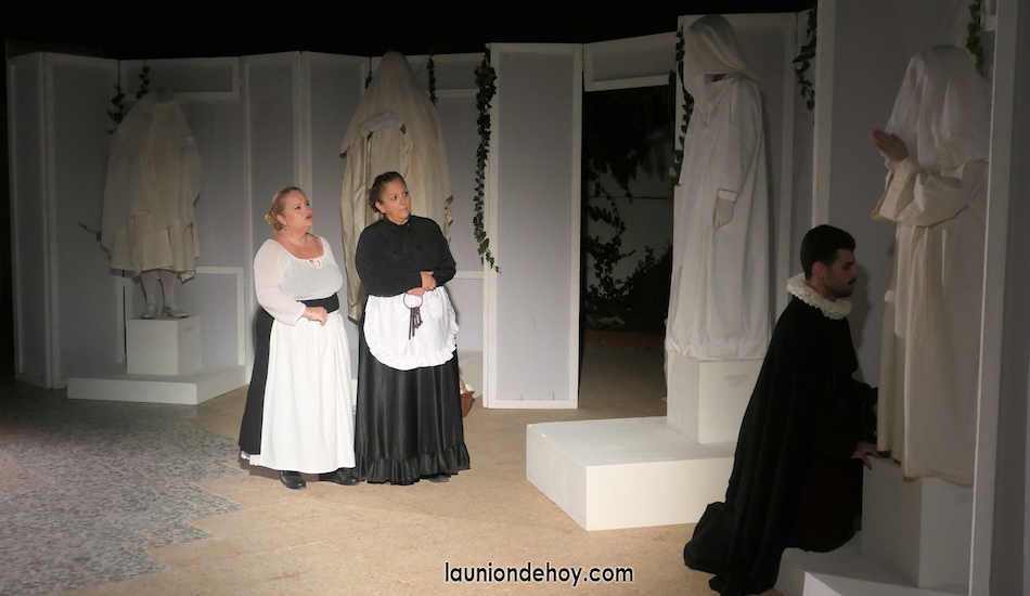 El 'Tenorio' de Portmán ha triunfado en sus dos primeras representaciones dentro un formato diferente, pues el público acompaña una obra por los escenarios, comenzando por la taberna de la Liga de Vecinos, que más tarde, en otros espacios y distribuciones, será el el salón y el comedor de la casa de Don Juan, mientras que la iglesia de Santiago Apóstol es el ideal convento en el que estaban Doña Inés y el patio de la Liga de Vecinos se transforma en una casa-cementerio muy bien gestada. Y todo ello con muy buenos juegos de luces ante un público reducido debido a que son lugares que no admiten aglomeraciones, con lo que los 55 afortunados de cada representación disfrutan de cerca de unos diálogos que les llegan sin pasar por los altavoces. El hilo conductor entre cada escena son Maricarmen y Maruja como narradoras.