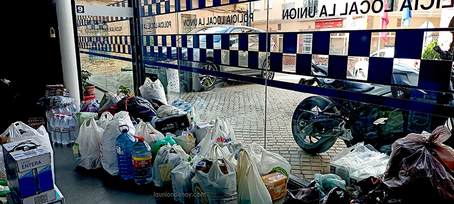 El cuartel del cuerpo municipal de seguridad de La Unión es un punto permanente las 24 horas para recoger productos para enviar a los afectados por las riadas. Se piden alimentos, productos de higiene y herramientas para retirar el barro, pero que, de momento, se aparque las aportaciones de mantas y prendas.