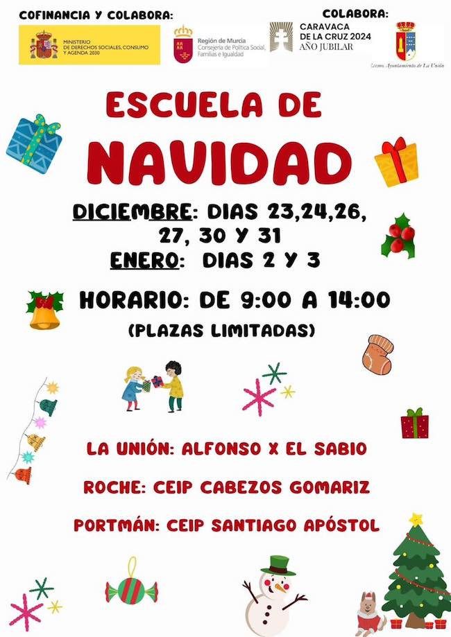 El Ayuntamiento de La Unión informa que los interesados ya pueden apuntarse en el centro de Servicios Sociales hasta el 15 de noviembre. Plazas limitadas, teniendo preferencia el orden de inscripción. Tendrán lugar en época vacaciones escolar en los centros de Alfonso X El Sabio de la ciudad, Ginés Cabezos Gomariz de Roche y Santiago Apóstol de Portmán.