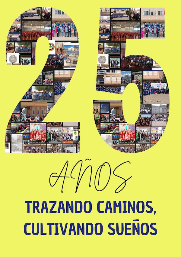 El centro docente alcanza su vigésimo quinto aniversario con el lema 'Trazando caminos cultivando sueños'. En la imagen, el alumnado formado un muy especial número '25' en la pista polideportiva de la instalación unionense de El Garbanzal.