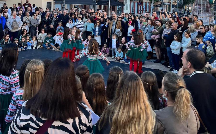ArteDanza ha ofrecido una atractiva exhibición de baile con tintes navideños durante esta tarde en la 'Feria Outlet' de la plaza de Joaquín Costa de La Unión.