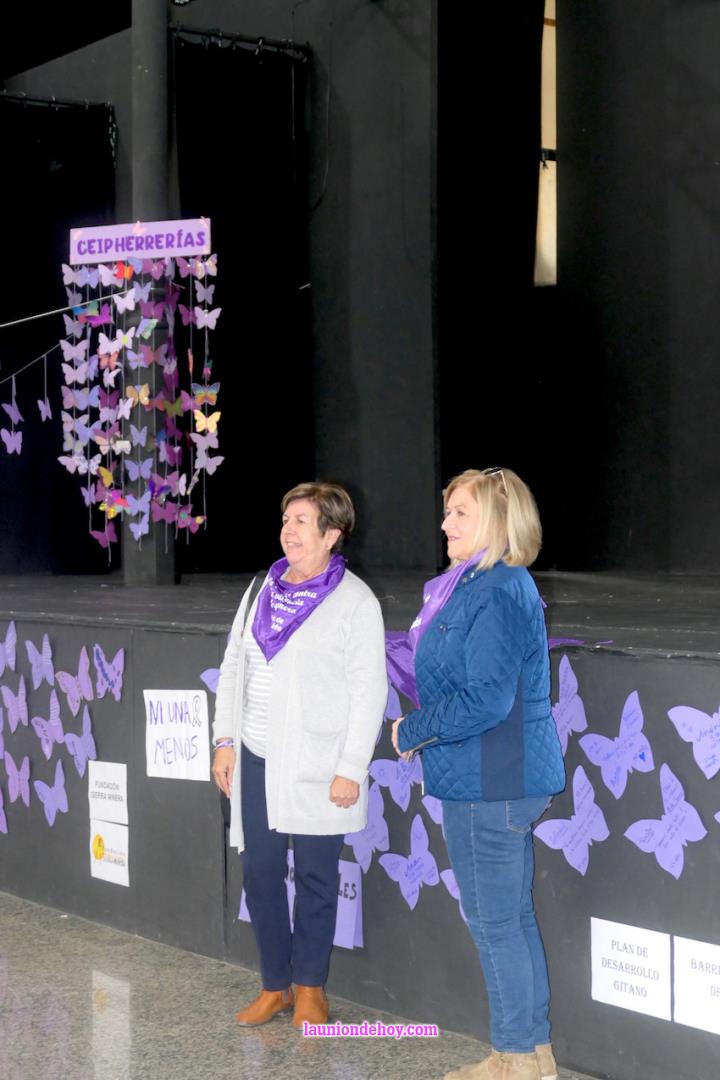 Las actividades del 'Día internacional de laeliminación de la violencia contra la mujer' en La Unión se ha desarrollado este año en el Mercado Antiguo, siendo el último capítulo la lectura del manifiesto ante la presencia de colectivos locales en un marco plagado por las emblemáticas mariposas, pero en una jornada que vuelve a ser trágica en el terreno de la violencia machista por el fallecimiento de una chica de 15 años de edad en Orihuela a manos, presuntamente, de su pareja, lo que eleva a 41 las fallecidas este año en España.