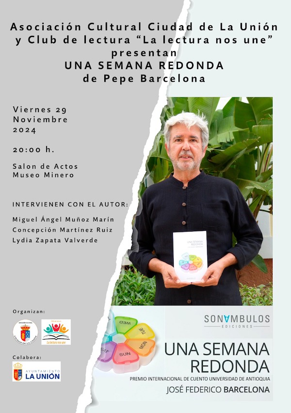 El próximo viernes 29, a las 20 horas, en el salón de actos del Museo Minero, el club de lectura 'La Lectura nos une' y la asociación cultural 'Ciudad de La Unión' han organizado la presentación del libro 'Una semana redonda', que ha sido premio internacional de cuento de la Universidad de Antioquia.