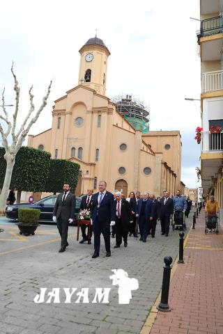 A su término, una gran traca barreno anunciaba a la ciudad la efeméride, comenzando a continuación la procesión, que ofreció dos novedades. Una fue el acompañamiento de la banda de música de la Agrupación del Nazareno de la Semana Santa Minera. La otra, cuatro carburos ubicados en las andas que llevaron a la imagen, que fue llevada por las manos de cuatro caballeros hasta la plaza de Joaquín Costa, frente al monumento al minero, donde el presidente, Carlos Bernabé y el alcalde de La Unión, Joaquín Zapata (a la sazón caballero), colocaban una corona de laurel.