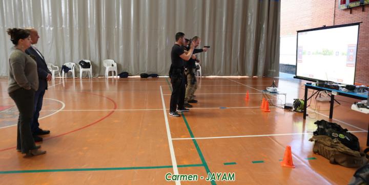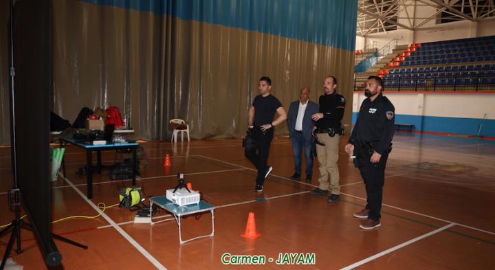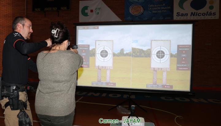 El pabellón Ramón Solano ha acogido un curso de formación sobre el uso de pistola con instructores del sindicato SPPLB Murcia. Ha asistido la primera teniente de alcalde del gobierno local y edil delegada en Seguridad Ciudadana, Isabel Egea, quien en un momento determinado ha aceptado el ofrecimiento de recibir algunos consejos.