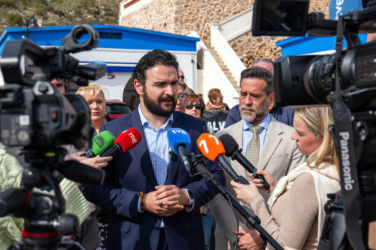 El consejero de Fomento visita Portmán para expresar el compromiso del gobierno regional y su postura común con el ayuntamiento y los vecinos, desde donde piden al Estado que habilite partidas propias para ejecutar la regeneración y no deje esa financiación pendiente sólo de los fondos europeos, además de reiterar que esos trabajos nunca deben ser el sellado sino la recuperación de un fondo de bahía de 250 metros.