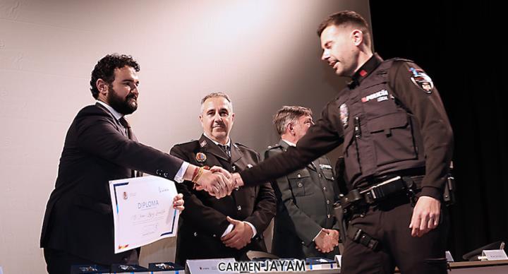 El capítulo final del acto institucional fueron las alocuciones de los integrantes restantes de la mesa. Fulgencio García, comisario honorífico de la Policía Local de Cartagena, felicitó a los agentes y los animó a seguir con el espíritu que están ofreciendo. Andrés Monje, comandante de la V Compañía de la Guardia Civil, pidió seguir con el clima de colaboración que existe entre este cuerpo y la policía local. "El ciudadano necesita contar con su policía, al margen del color de su vestuario; precisa cercanía y calidad", dijo.