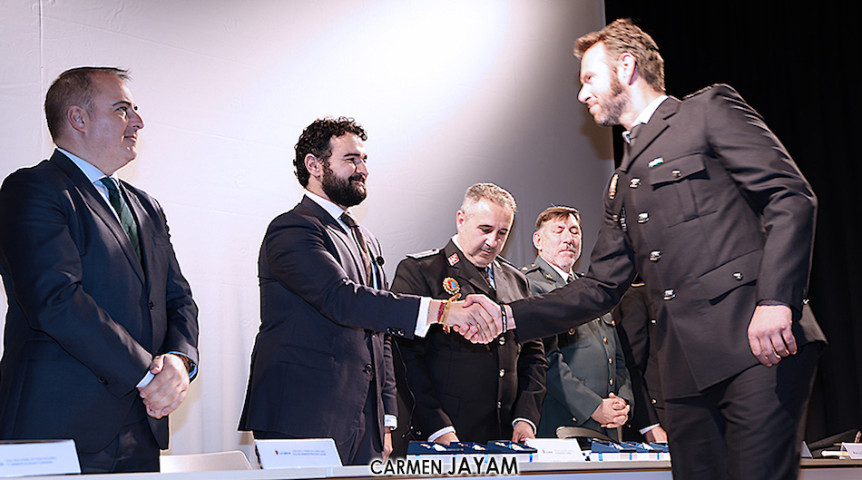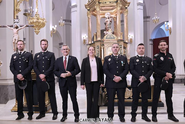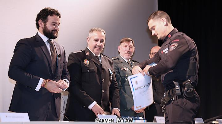 Las medallas por la trayectoria vocación de servicio, dedicación y compromiso fueron para los seis agentes que el 22 de febrero de 2024 actuaron en una vivienda donde tres personas habían entrado, amordazando y golpeando a la persona que esta en el interior, con propósito de robar: José Javier Beltrán, Sergio María Dolores, Pedro Muñoz, Daniel Sánchez Gregorio Caparrós y Carlos Artés.