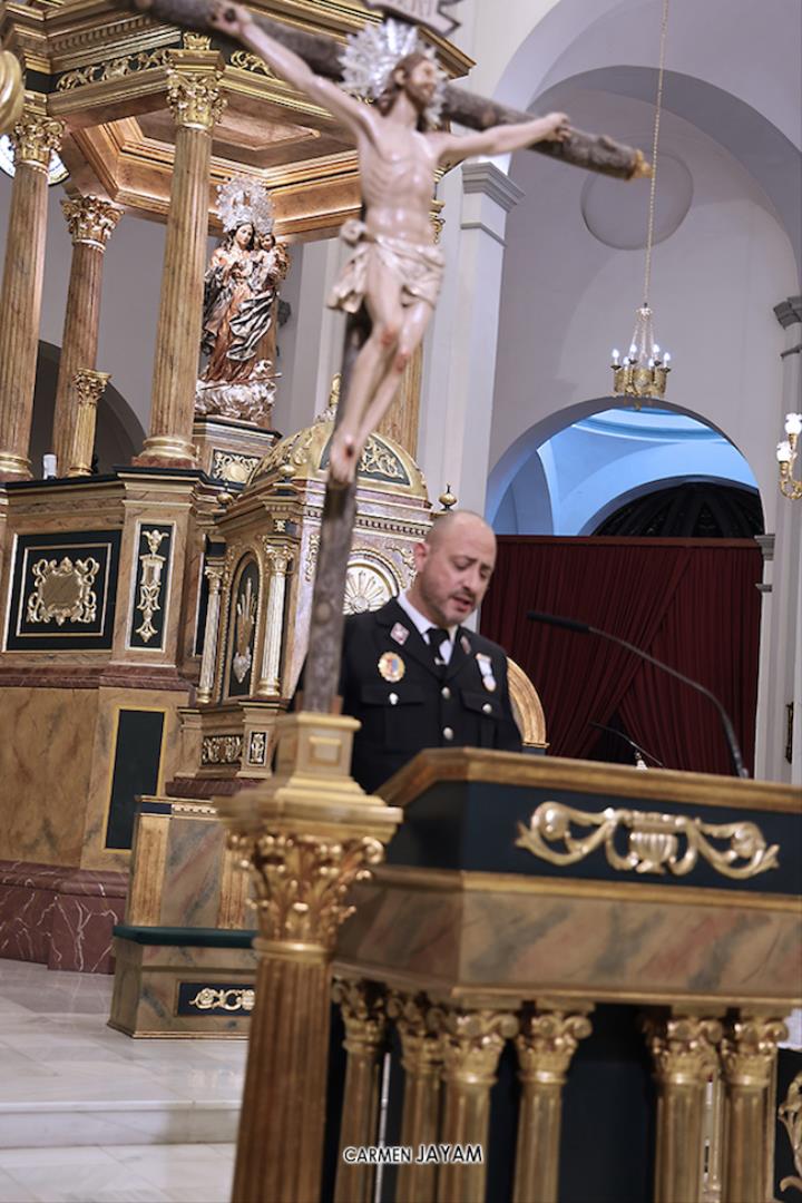 El momento más emotivo fue el recuerdo a Juan Albaladejo, fallecido hace unas fechas. Su viuda recogió un ramo de flores entregado por el comisario y el alcalde mientras escuchaba lo que fue la mayor ovación de la mañana.