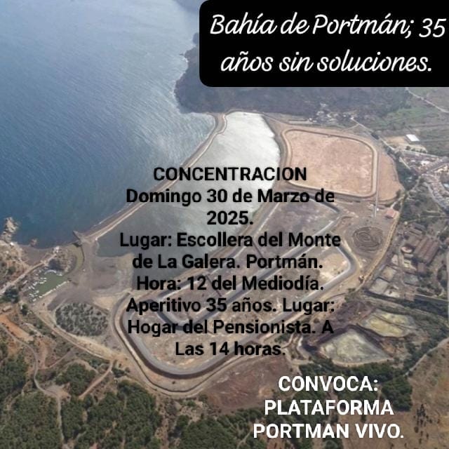 Fue el 30 de marzo de 1990 cuando se cortaron los vertidos mineros de la sierra al Mediterráneo. Ese mismo día se anunció que este enclave iba a ser regenerado... y todavía sigue esperando, por lo que la plataforma 'Portmán vivo' organiza una concentración para este domingo en la escollera del monte de la Galera con posterior pasacalles y aperitivo. Foto adjunta de aquel día obtenida del Archivo General de la Región de Murcia