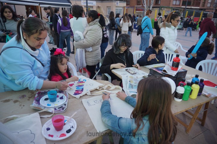 En los costados de la plaza de Joaquín Costa se desplegaron talleres gratuitos, que detallamos a continuación junto a los que se ofrecerán hoy hasta las 14 horas. Entre los que más éxito tuvieron estuvo el de cajón flamenco y el mural.