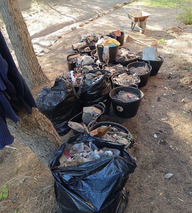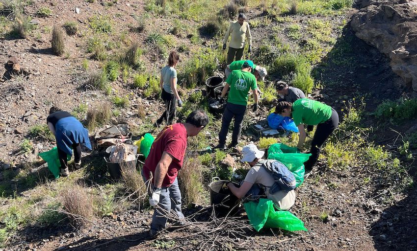 La limpieza del paraje sito junto ala ciudad de La Unión, organizada en una acción conjunta entre ARBA Cartagena-La Unión, los voluntarios de 'Salvemos El Chorrillo', Ayuntamiento de La Unión, USM, Protección Civil y voluntarios que se sumaron a una convocatoria en la que se recogieron más residuos de los calculados.