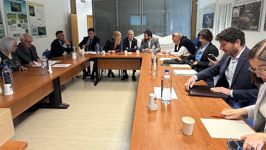 El alcalde de La Unión, Joaquín Zapata, junto al consejero de Fomento e Infraestructuras, Jorge García Montoro, el Secretario de Estado de Medio Ambiente, Hugo Morán, delegada del gobierno, Mariola Guevara, y representantes vecinales, han estado presentes en la Comisión de Seguimiento del convenio de recuperación ambiental de la bahía en el que el Ministerio ha manifestado como única alternativa el sellado de los estériles mineros.