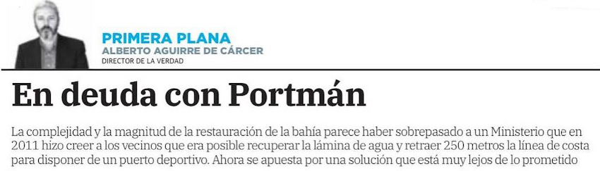 Reproducimos el artículo de opinión escrito por Alberto Aguirre de Cárcer, director del periódico La Verdad, sobre la situación actual de la bahía de Portmán