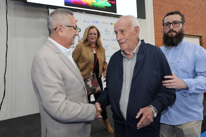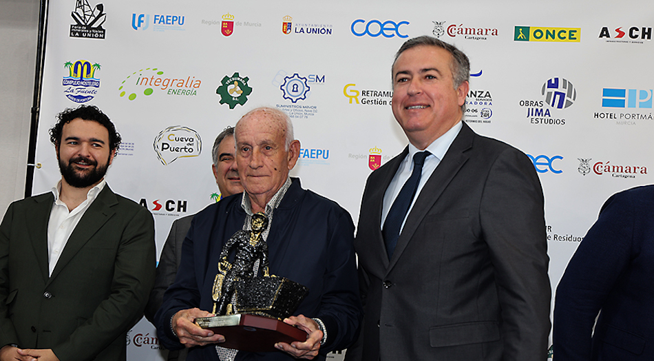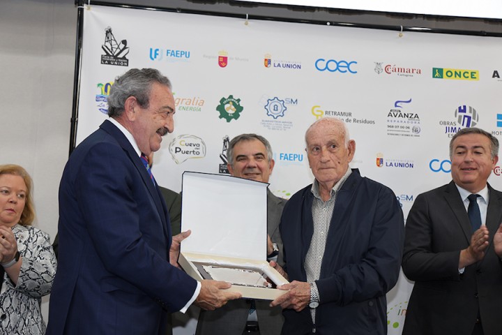 El acto de inauguración ha contado con la presencia del alcalde de La Unión, Joaquín Zapata García; el consejero de Medio Ambiente, Universidades, Investigación y Mar Menor, Juan María Vazquez; y el presidente de FAEPU y presidente de la feria, Carlos Fernando Bernabé Pérez siendo un capítulo destacado el homenaje al minero, reconocimiento que este año ha recaído en la persona de Antonio Pleguezuelos Martínez, de 81 años de edad, que empezó su a trabajar en las minas a los 18 años como peón, cargando vagonetas bajo las entrañas de la tierra y que gracias a Dios, nos decía, no había contraído la enfermedad del minero, la silicosis. Le entregaban las placas de reconocimiento a su vida de minero, la presidenta de COEC, Ana Correa, y el vicepresidente de la Camara de Comercio, Andrés Ayala, y el presidente de la feria y los empresarios unionenses, además de también vicepresidente de COEC, Carlos Fernando Bernabé.
