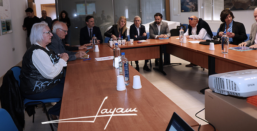 A la izquierda del lector, los representantes de Liga de Vecinos y de Fundación Sierra Minera en la última reunión de seguimiento celebrada en Portmán