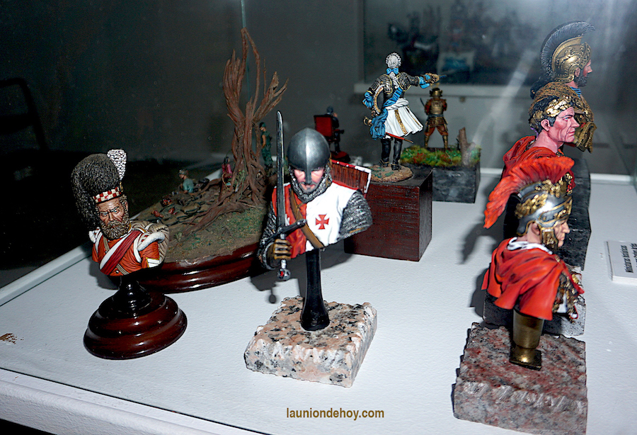 La primera planta de la Casa del Piñón ha vuelto a mostrar piezas de la colección de Carlos Artés García, quien es el comisario de la Policía Local de La Unión, en esta ocasión basada en escenas bélicas y en personajes del Imperio Romano y de la Edad Media.