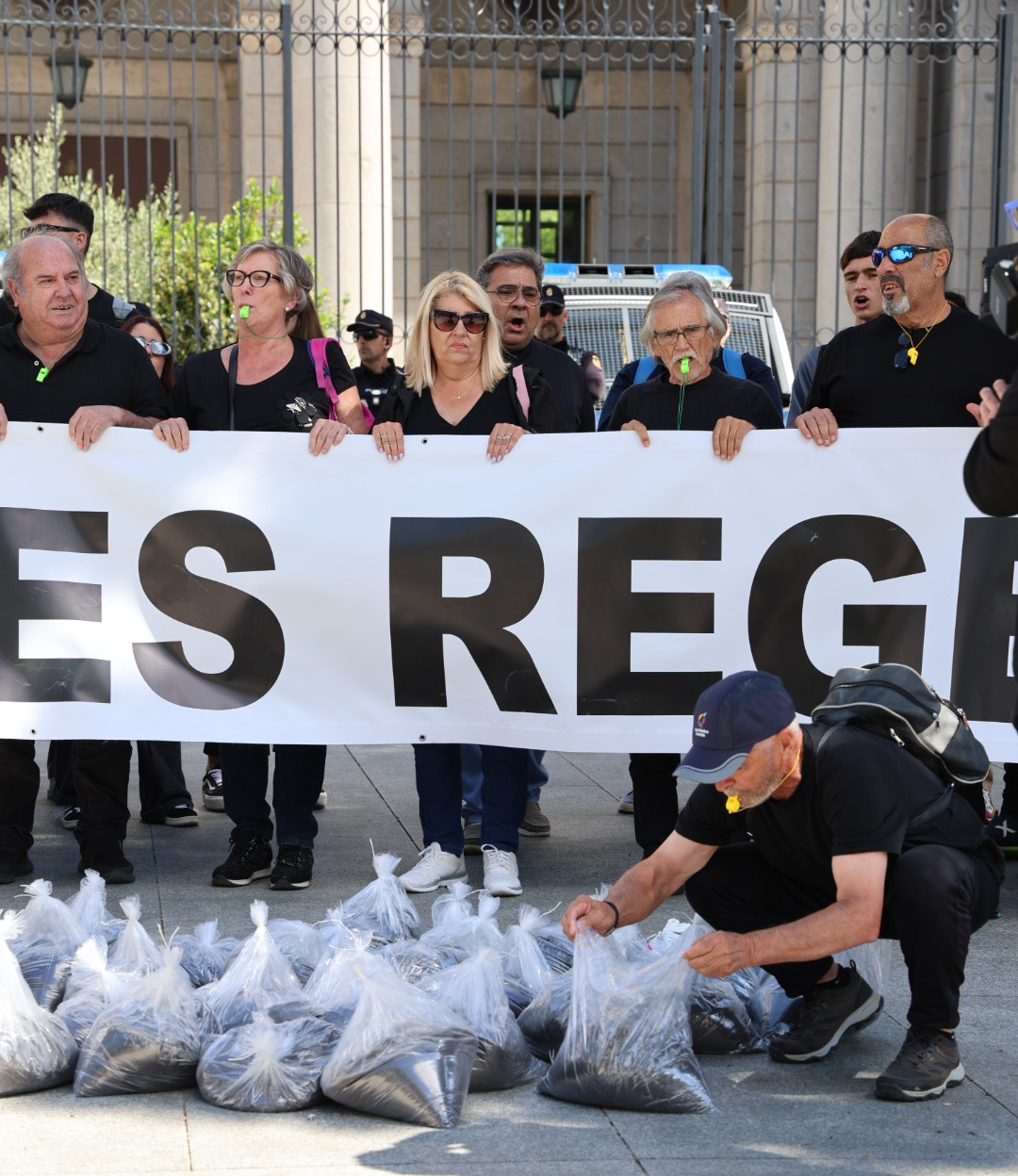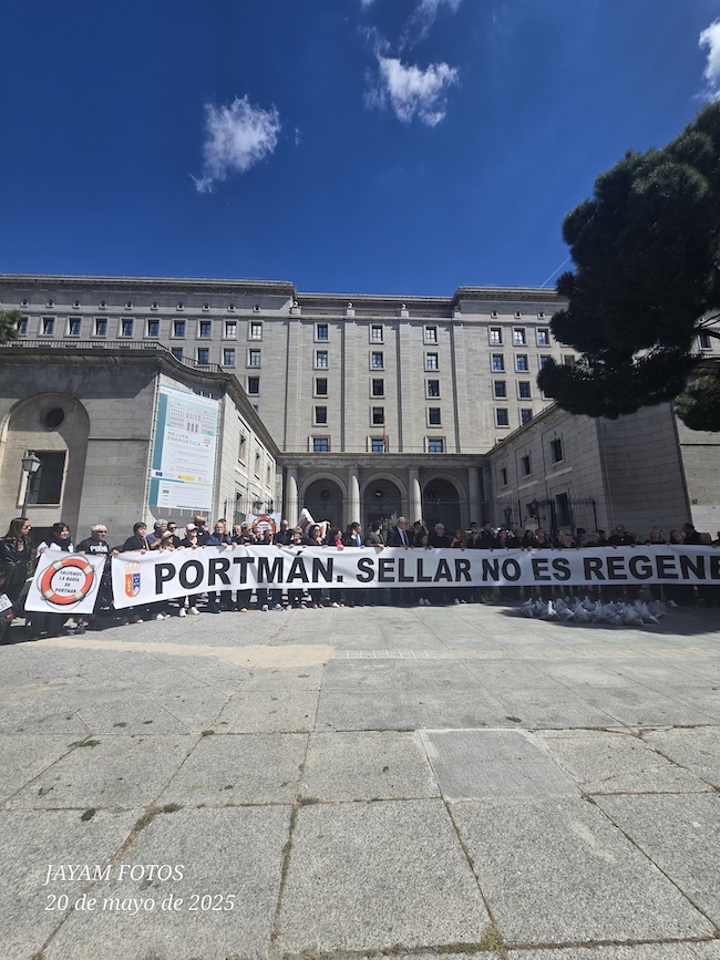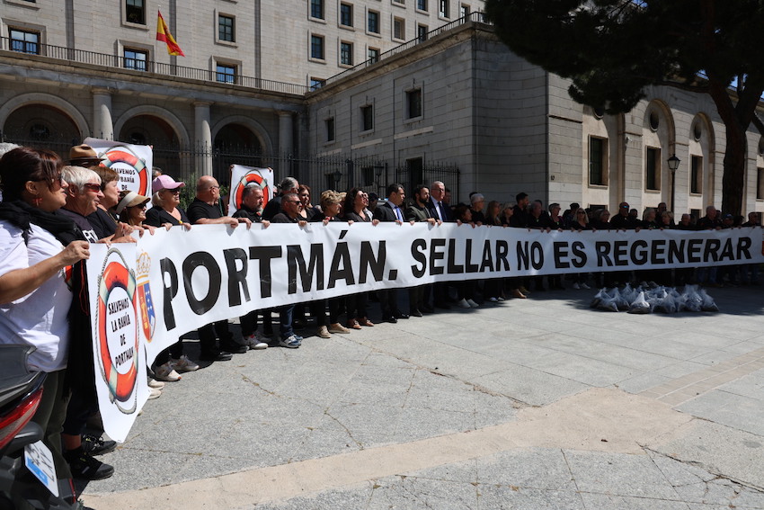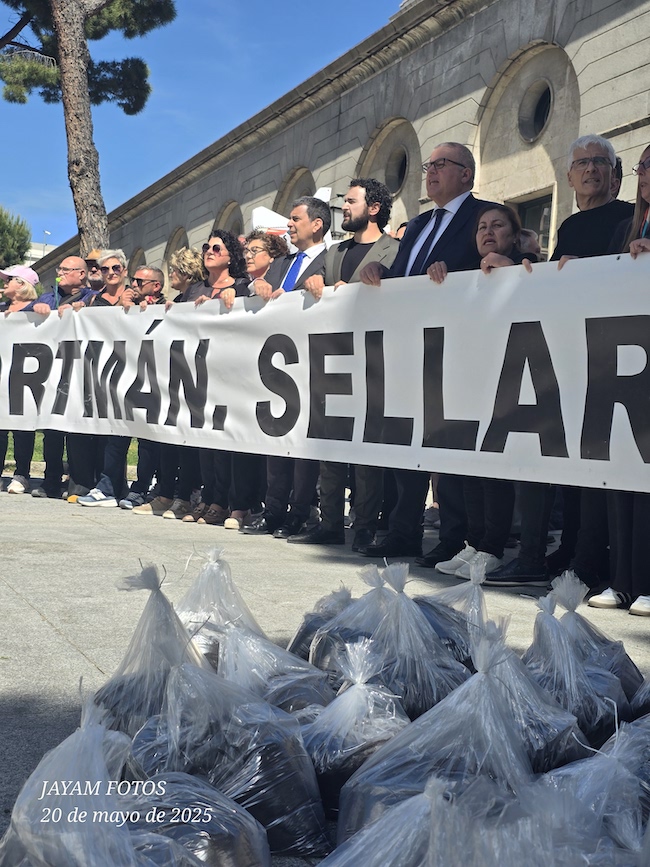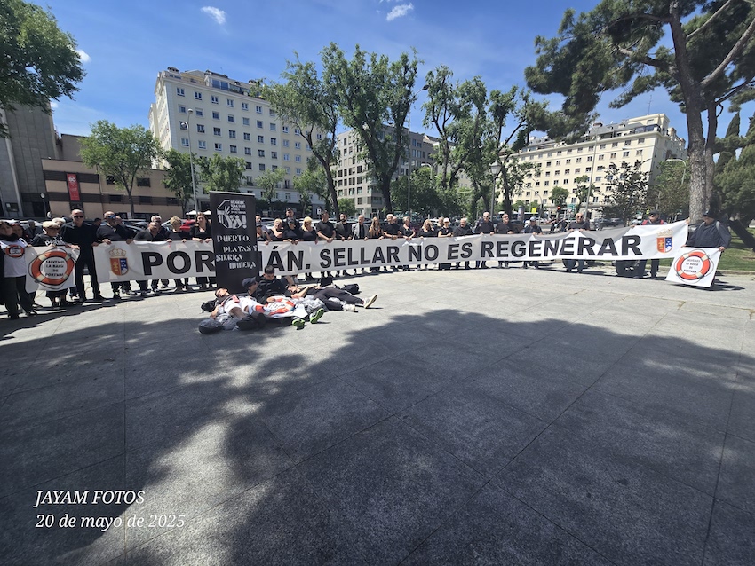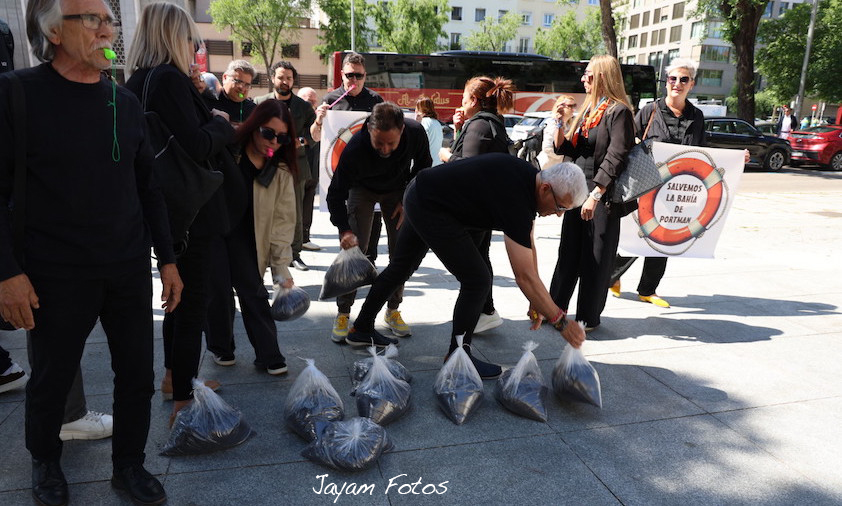 Con un saco de arena de la bahía por cada uno de los 35 años que han pasado desde que acabaron los vertidos y ese mismo día el Estado anunció que regeneraría la bahía. Ahora se quiere sellar ese 'atentado ecológico', por lo que La Unión ha gritado "¡No al sellado, sí a la regeneración!" en la puerta donde están los que deciden qué hacer y cuándo. Se ha entonado y se ha representado, con varios jóvenes echándose al suelo sobre las bolsas de arena negra, en juego con el vestuario luctuoso, para reivindicar un futuro para ellos en esta tierra. Portmán está más vivo que nunca y merece que se le atienda y se le escuche, no que se le imponga.