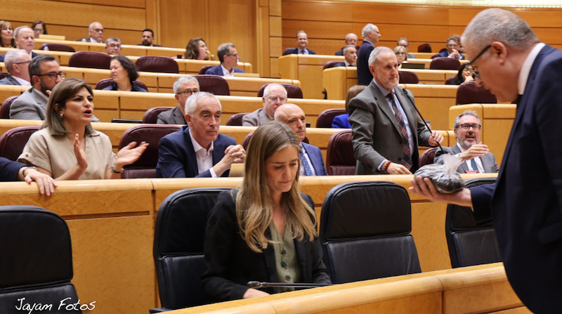 Inma Sánchez Roca, senadora del Grupo Parlamentario Socialista, a quien se observa en la fila situada detrás de la ministra, afirma que se respetan "y escuchan" las reivindicaciones de los vecinos, pero que no toleran que el Partido Popular quieran "hacer de esto un espectáculo usando unas reivindicaciones justas para confrontar de una manera sucia" y considera que Bernabé "ha traspasado todos los límites".