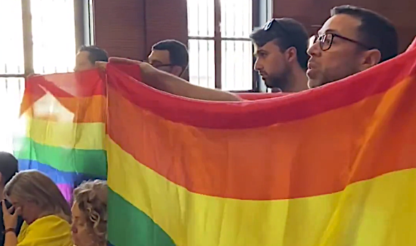 Podemos y activistas LGTBIAQ+ desafían al gobierno local y despliegan banderas del Orgullo en el pleno