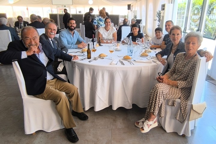 La comida estuvo compuesta por una ensalada marinera con salsa césar, alcachofas gratinadas con foie y virutas de jamón, media dorada a la espalda con gulas y gambas y carrillada de cerdo estofada , todo maridado con vino crianza Denominación de Origen Calificada Rioja viña Pomal . Como postre ser sirvió una tarta tiramisú finalizando con una copa de cava Brut Nature que todos aprovecharon para brindar por el premiado. A continuación se habilitó una barra y el DJ Raúl Oliveira procedió a 'pinchar' música que puso a los asistentes a bailar.