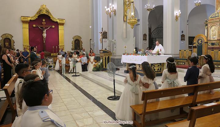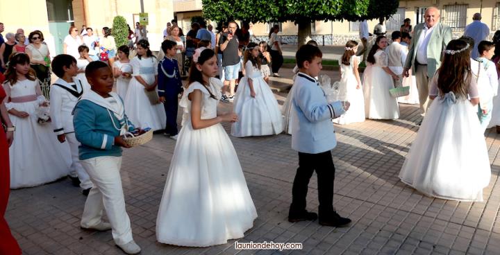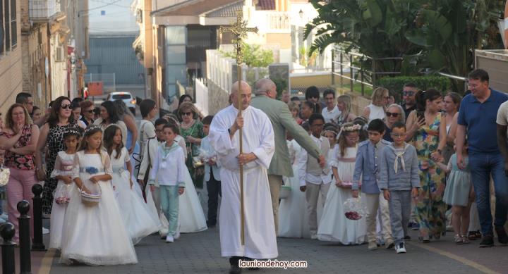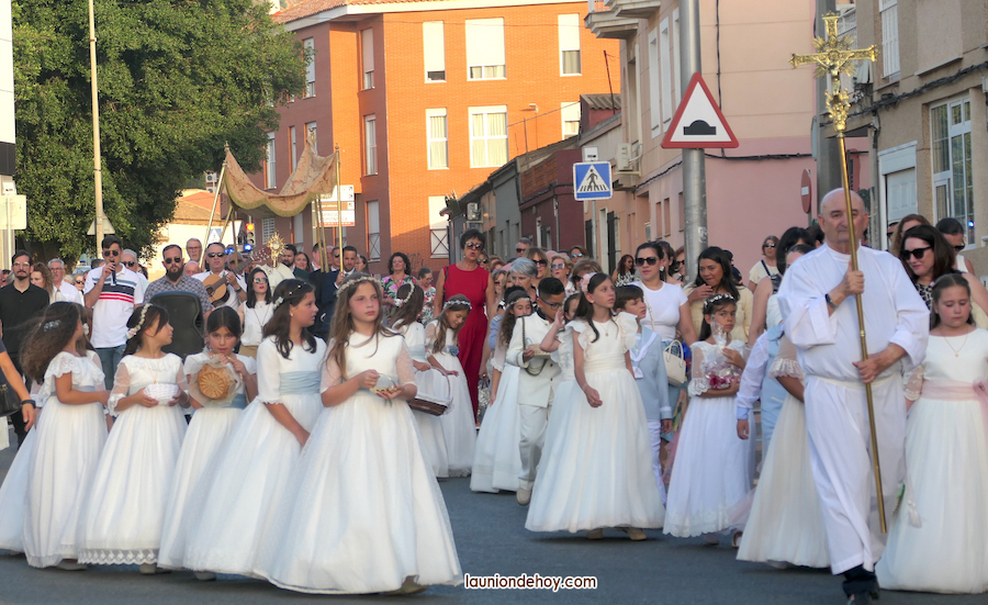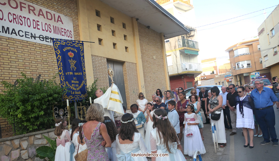 La cifra corresponde a los chavales que han tomado la primera comunión este año en La Unión y que han formado parte de la procesión del 'Corpus Christi', con nuevo recorrido, transitó entre las dos iglesias urbanas efectuando paradas en cinco altares.