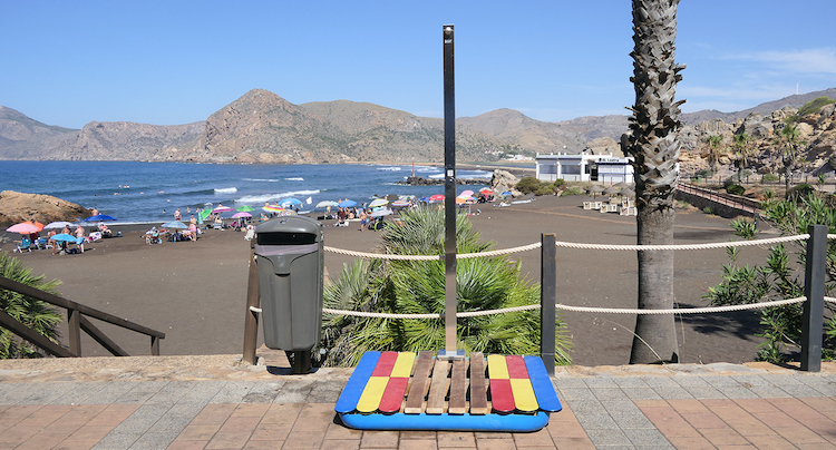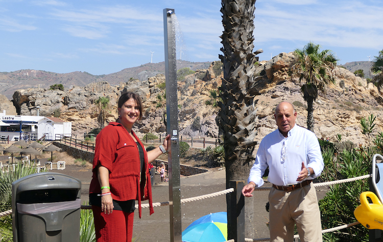 Esta mañana la primera teniente de alcalde, Isabel Egea, y el concejal Damián García, de VOX, han inaugurado un nuevo servicio público en la playa de Portmán que era muy demandado por los bañistas.
