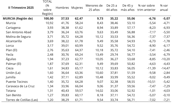 El portal estadístico de la Región de Murcia, integrado en la Consejería de Economía, Hacienda, Fondos Europeos y Transformación Digital de la Región de Murcia, ha publicado el informe del paro registrado en el territorio autonómico tras concluir el segundo trimestre de 2025.