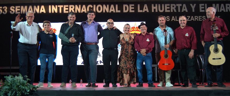 Paco Paredes (repentizador) e Isabel Vicente (cantaora), a quienes se observa en la imagen a la izquierda del lector, han formado parte del elenco de artistas de la poesía improvisada que llenó de versos anoche la 53 edición de la 'Semana de la huerta y el mar' de Los Alcázares.