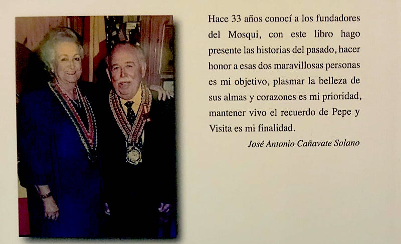 Tres generaciones de la misma familia han pasado por 'El Mosqui', comenzando por José de la Orden y Visitación Vera, quienes después lo pasaron a su hijo, Isidoro de la Orden Vera, llegando ahora a sus nietos Isidoro 'Pititi' y Sergio. "El primero está en sala y es quien lleva la gestión económica del negocio, mientras que Sergio trabaja en la cocina", matiza José Antonio, quien explica qué le llevó a meterse en escribir este libro. "En 1992 es cuando conocí a los fundadores, a don José y a Visita. Charlábamos mucho, descubrí muchas cosas interesantes y ya entonces pensaba que todo eso que contaban debía reflejarse por escrito, y creí que alguien lo haría. Sin embargo, al ver que no sucedía, lo que fue una idea se fue convirtiendo en deseo con el paso del tiempo y en 2022 me lancé a escribirlo", explica, indicando que el texto final ha sido supervisado por la familia, recibiendo el visto bueno, "realmente el libro es un homenaje a don José y a Visita, donde grandes personas, que se lo merecían", dice con énfasis quien, por último, también quiere mostrar su gratitud a editorial 'La tarjetería', "pues Miguel Ángel Garrijo nos ha ayudado más allá de los intereses de su profesión".