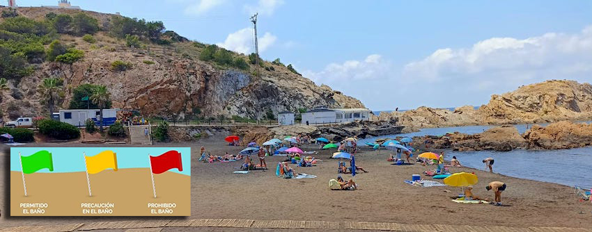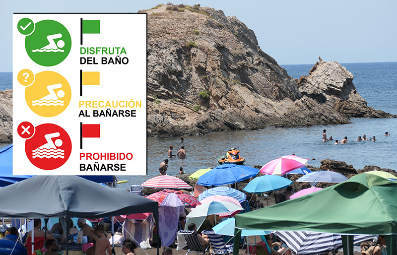 Para comprobar en cada momento el color de la bandera del puesto de socorrismo de las playas de El Lastre y de San Bruno, o de cualquier otra de la costa regional, el periódico de La Unión ha habilitado en la parte superior una pestaña identificada como 'Playas'.