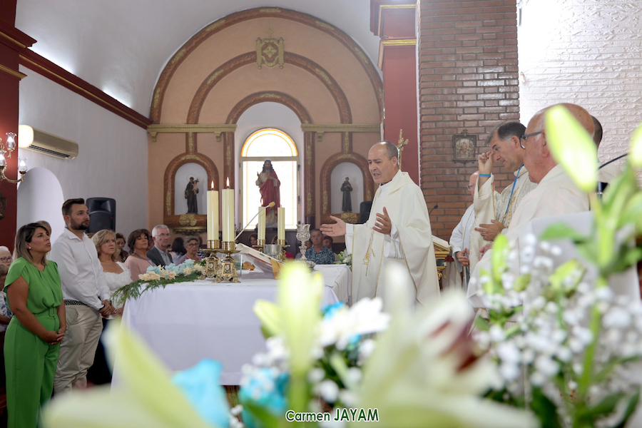 El reverendo Ginés Luis Vicente, párroco de Nuestra Señora del Rosario, formó parte del quinteto de sacerdotes que ofició la solemne eucarístía en honor a Nuestra Señora de los Llanos patrona de la vecina población de El Algar.